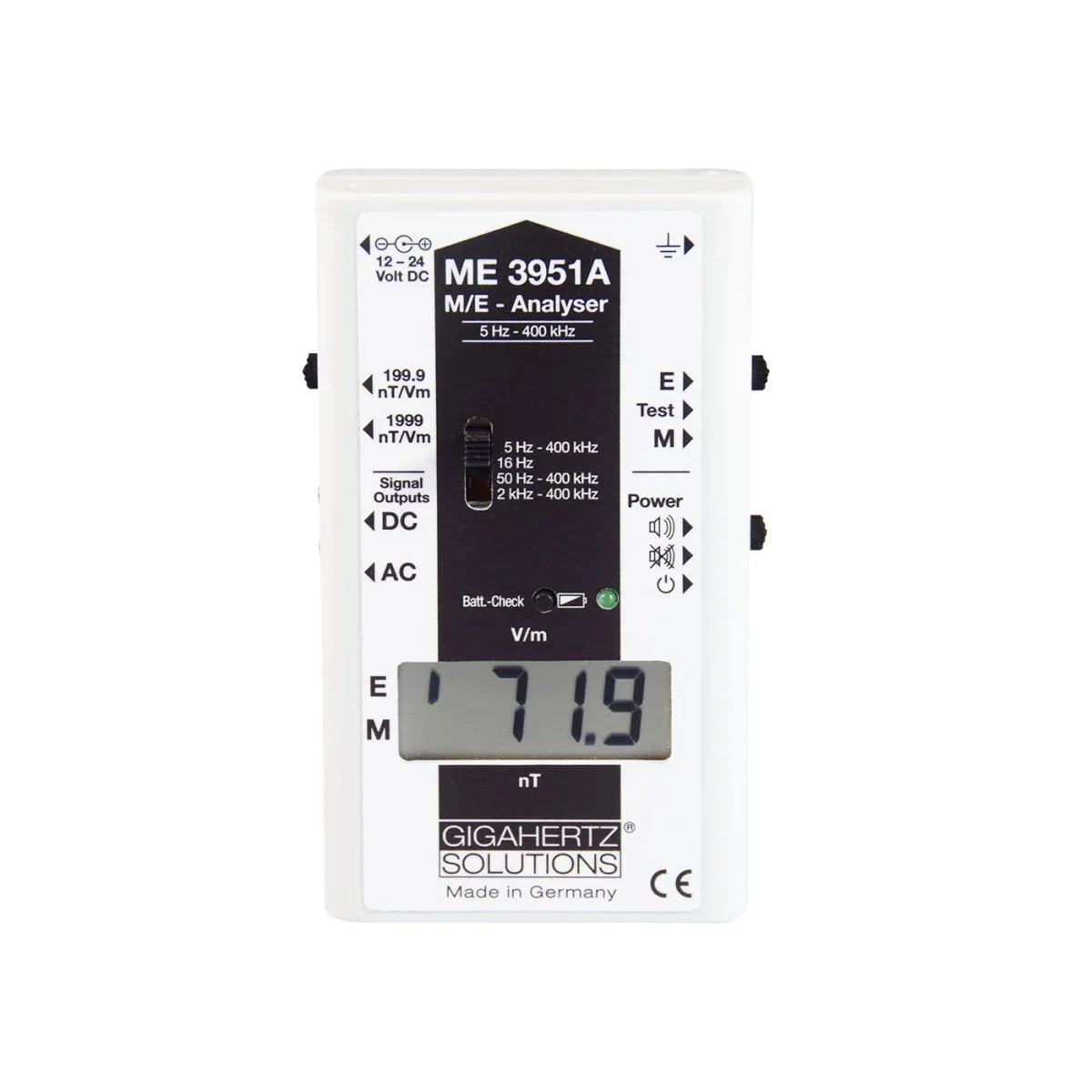 Comprises all features of the ME3851A, and additionally offers an extended frequency range from 5 Hertz to 400 Kilohertz, in accordance with the TCO guidelines. An important decision criterion when offering professional LF measurements.